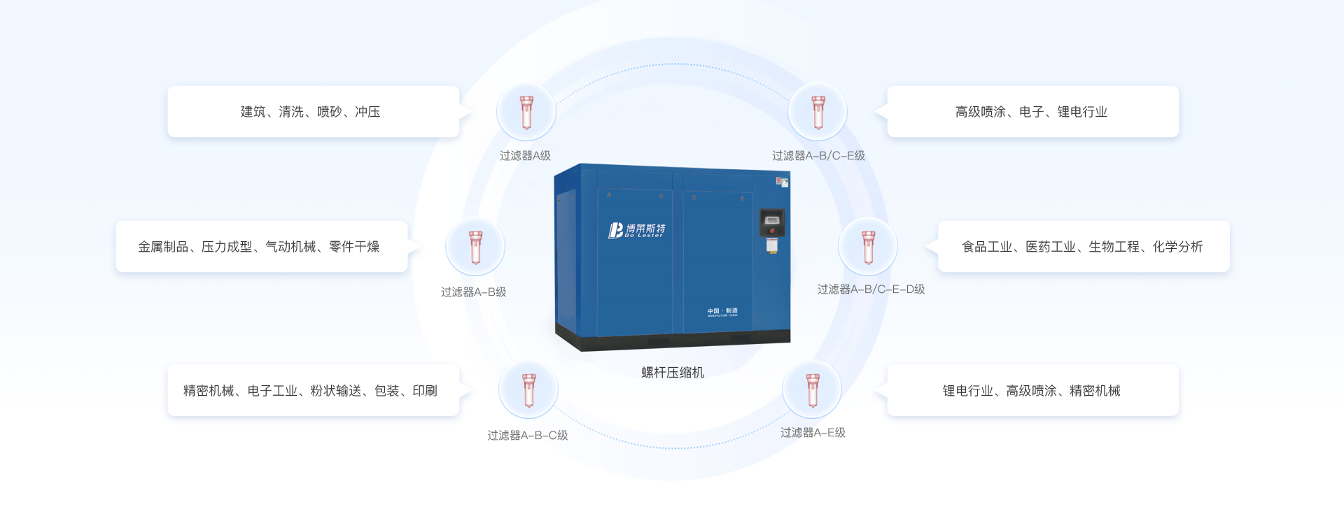 事螺桿式壓縮機、冷凍式干燥機、吸附式干燥機、真空泵、高精密過濾器等空氣動力系統設備研發、
